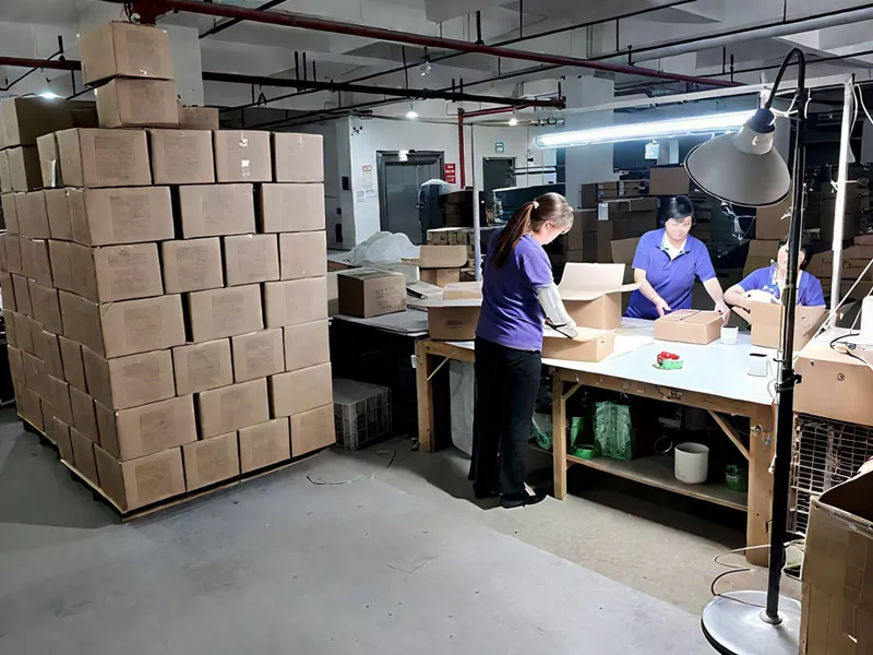 För att underlätta förpackningar och frakt har vi etablerat vårt eget förpackningscenter nära vårt huvudkontor i Dongguan. Detta centrum är specialiserat på förpackningslösningar för bräckliga föremål som glasljushållare och diffusorer. Vi kan skapa anpassade lådor och foder, och vi använder miljövänliga material för att skydda föremål som glasdiffusorer och dekorativ keramik, vilket säkerställer deras säkerhet under transport.