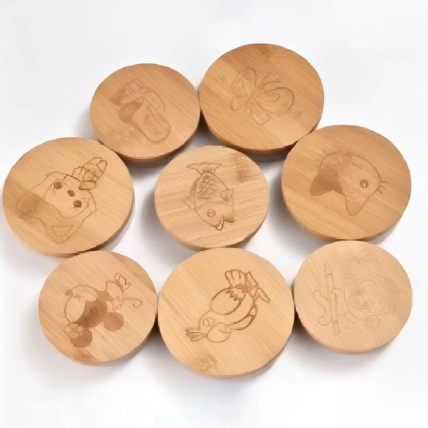 BYF: s anpassade miljövänliga trälock, speciellt utformade för glasburkar, är både praktiska och estetiskt tilltalande. De är gjorda av ljust naturligt trä med klart, naturligt korn, de känner sig mjuka och bekväma vid beröring. Vi erbjuder två designalternativ: högupplöst utskrift för livliga färger och livliga detaljer och lasergravering för raffinerad struktur och eleganta linjer. Vi erbjuder ett brett urval av mönster, inklusive roliga mönster som små djur och siffror, var och en genomsyrad med en touch av handgjorda detaljer och konstnärlig stil.