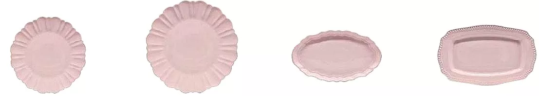 Denna macaronrosa keramiska skåluppsättning innehåller nio stycken (skål, tallrik, djupplatta, tekopp och tekanna). Denna mångsidiga produkt kan anpassas individuellt eller som en komplett uppsättning av alla nio. Finns i storlekar som passar varje matstillfälle, från frukostflingor till middagar till middagar till eftermiddagens tekoppar, tillgodoser en uppsättning ett brett utbud av behov.